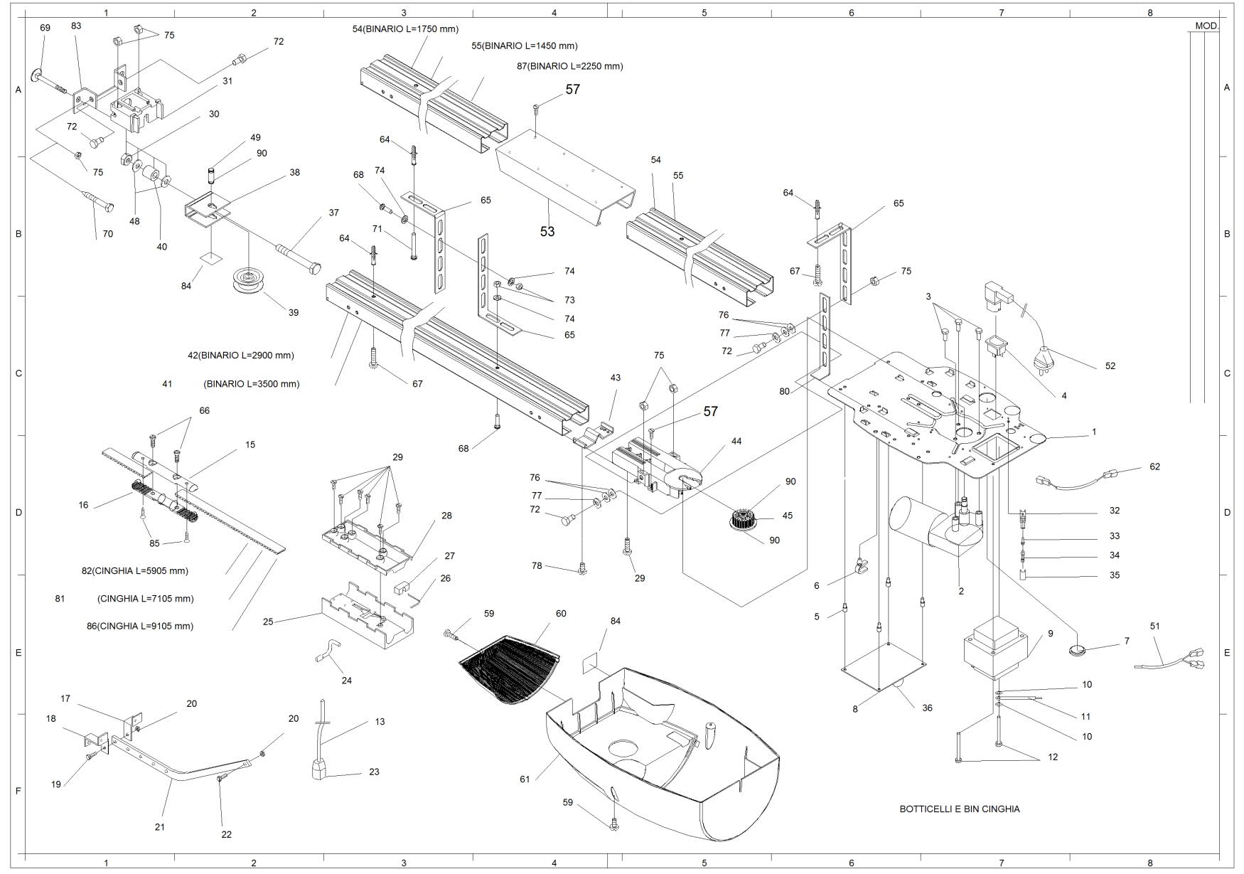 Σχεδιάγραμμα, εξαρτήματα, ανταλλακτικά για μοτέρ οροφής BFT Botticelli