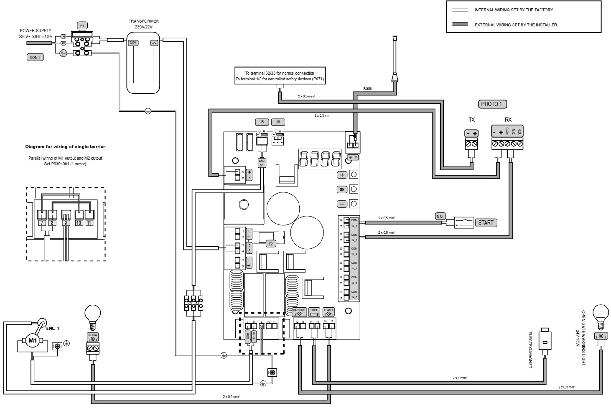 Τυπικό σχεδιάγραμμα σύνδεσης σε μηχανισμό μπάρας ελέγχου κυκλοφορίας - ΤΥΡΕ 03