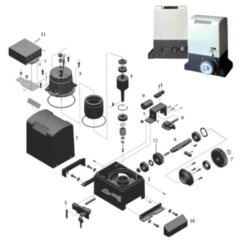 Illustration, components and spare parts for sliding operator GR30-230V
