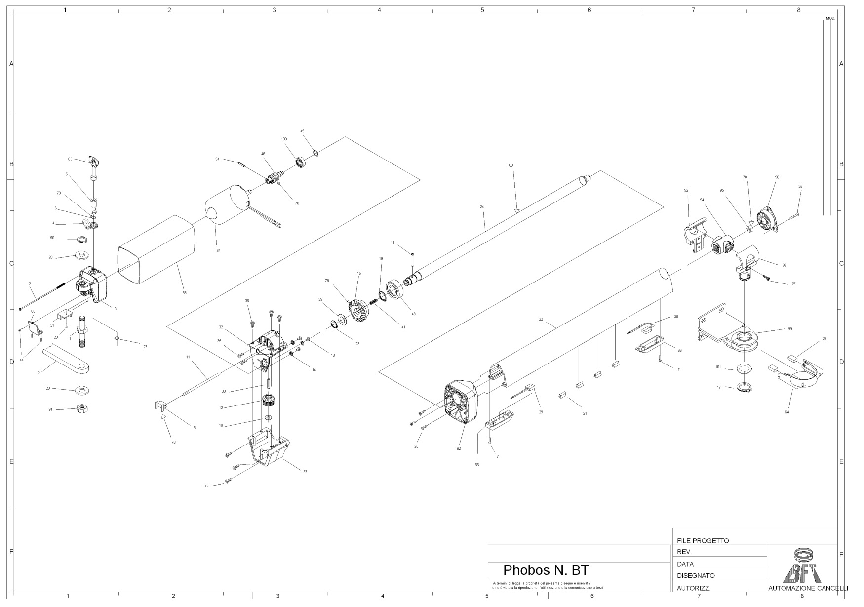 Σχεδιάγραμμα (1) - ανταλλακτικά για ανοιγόμενο μοτέρ BFT PHOBOS N BT 24V