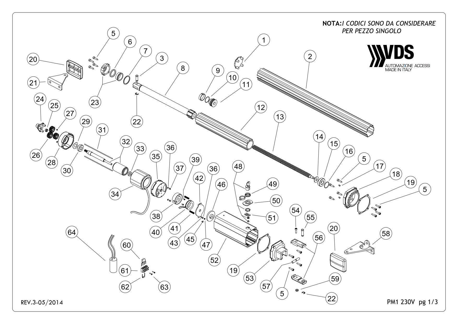 Σχεδιάγραμμα - εξαρτήματα - ανταλλακτικά για ανοιγόμενο μοτέρ VDS PM1