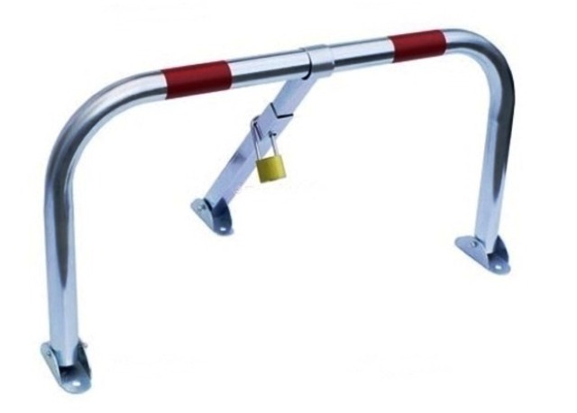 Χειροκίνητη μπάρα πάρκινγκ, τρίποδη. Κατασκευασμένη από γαλβανιζέ χαλυβδοσωλήνα διαμέτρου Φ38mm και πάχους 1,5 χιλ. Κλειδώνει με λουκέτο το οποίο παρέχεται στη συσκευασία.