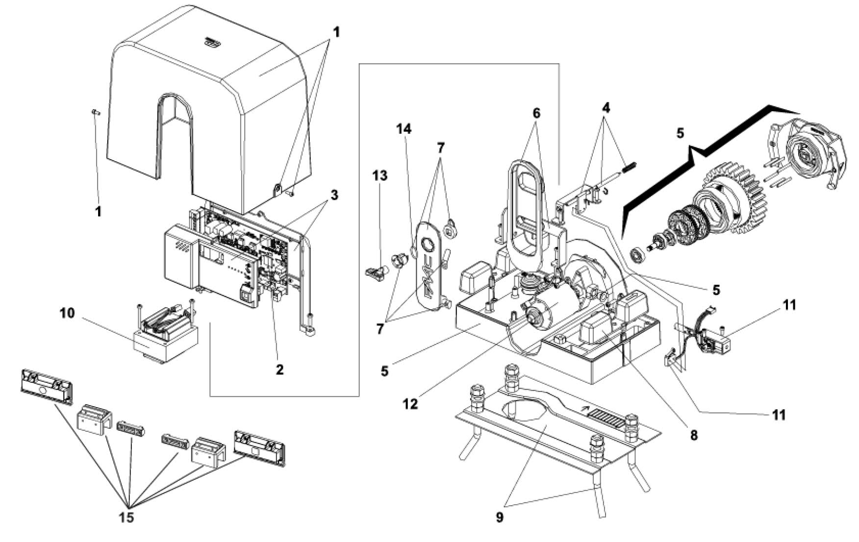 New mobile-axis reduction principle. FAAC PATENT. Exceptionally high mechanical performance >80%. Control unit with anti-crushing device and electronic encoder with reverse function upon detection of obstacle. Magnetic limit switches. Master-Slave function for controlling 2 opposing leafs with an E721 board.